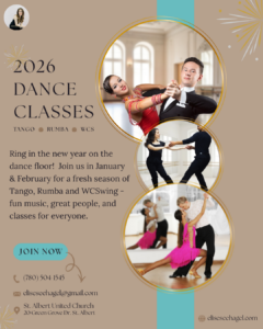 Start the new year with wonderful people in our dance community, and learn a new skill!  Join the fun this Winter in St. Albert on Tuesday and Wednesday nights.
